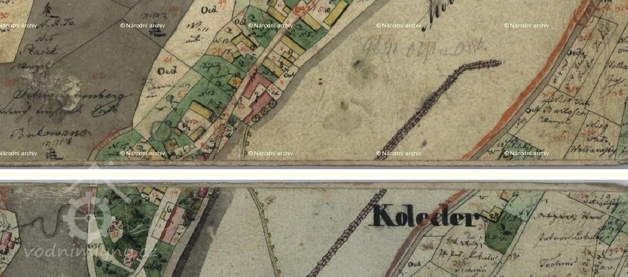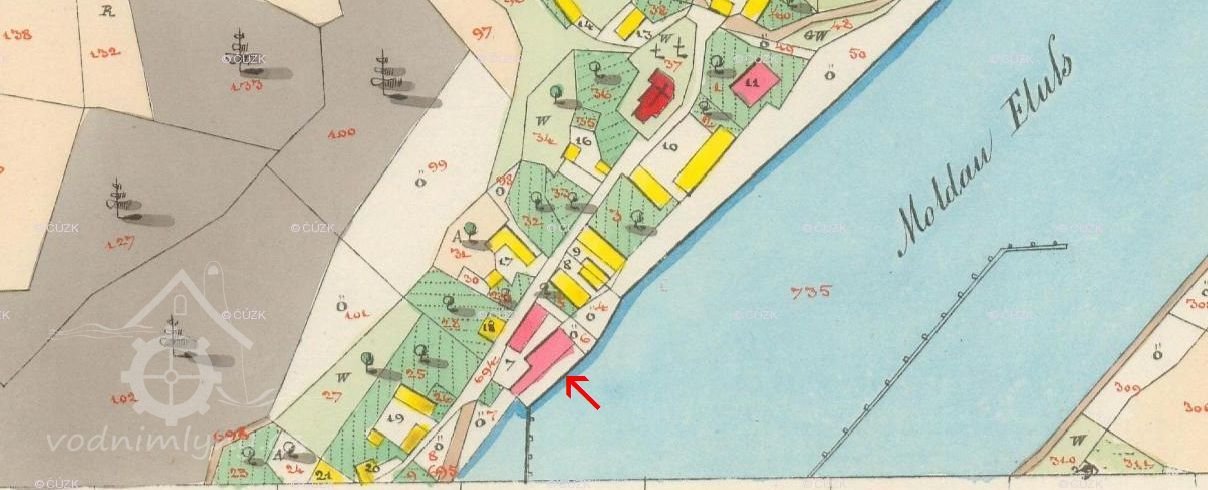 Popis1930: 1 kolo na spodní vodu, hltnost 2,5 m3/s, spád 0,9 m, výkon 9 HP