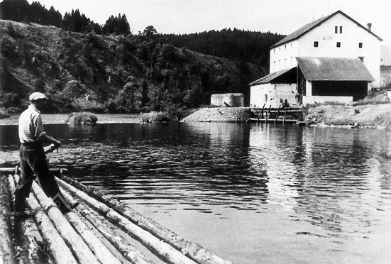 Orlickou přehradou zatopený mlýn v obci Podskalí na pravém břehu Vltavy