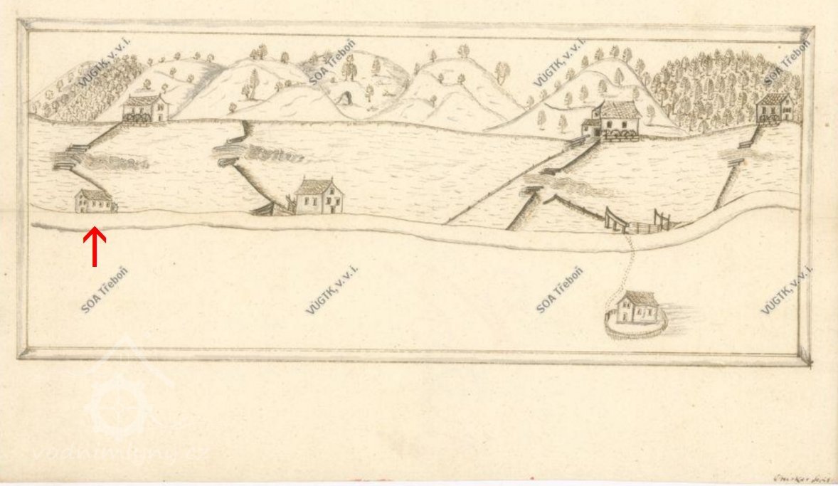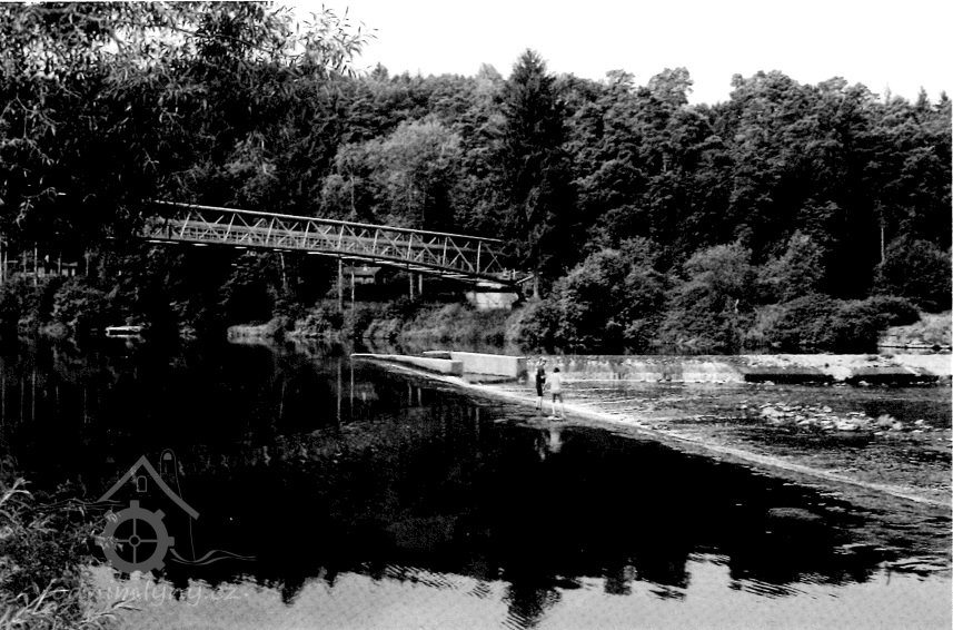 Zaniklý mlýn na pravém břehu Otavy, zbořen v souvislosti s výstavbou Orlické přehrady, dnes na jeho místě MVE.