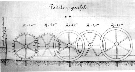 ke kolům 2 žlaby se stavidly, v prvním žlabu 2 kola, v druhém 1 kolo