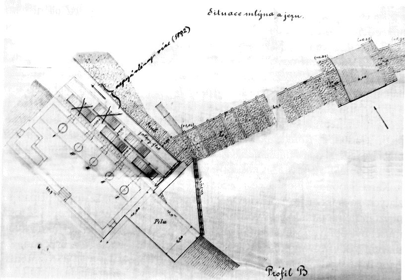 poč. roku 1910 při dřenici opět jez poškozen, levé křídlo pobořené v délce 15 m, zbyla jen jezová koruna a tzv. předprsí, které je nakloněné a hrozí odplavením