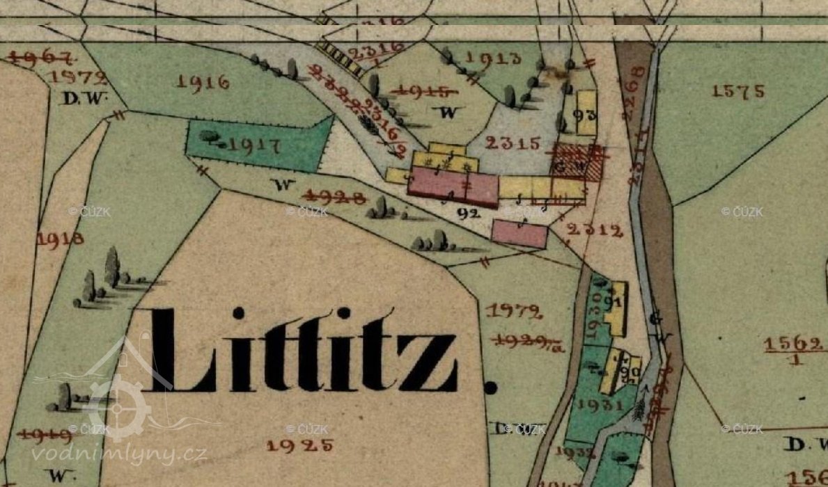 Podle starých záznamu byl v Liticích už v roce 1624 panský mlýn. Mlynárské remeslo bylo jedním z nejstarších remesel v našich zemích, jak dokazují starodávná pojmenování osad a vesnic kolem rek. Každý mlýn mel svoje charakteristické jméno, které jej oznacovalo a provázelo po mnoho let. Byly pojmenovány bud podle obce nebo podle majetkové príslušnosti. Pokud stálo více mlýnu na téže vode, prísne se hledelo na to, aby dolejší mlynár mel stejne vody jako mlynár horejší. Proto byla úredne stanovena výška prahu cejchem, cemuž se ríkalo právo mlýna. Aby mohly být mlýny v provozu, musely mít dostatecný prítok vody na vodní kola nebo pozdeji na turbiny. Mlynári proto staveli na rece jezy, od nichž vykopali náhony a nad mlýny vyhloubili a hrázemi opevnili rybníky nebo nádrže. Tím si zajistili dostatek vody a potrebný spád. V sušších mesících mohla nadržená voda alespon na cas udržet mlýn v chodu. Ale i presto byli mlynári vydáni napospas vrtochum pocasí, at už se jednalo o sucho, povodne ci mráz, kdy museli prerušit mletí. Mlýn vedl vždy vyucený mlynár, který byl majitelem nebo nájemcem mlýna. Byl nazýván „pan otec“ nebo „pan táta“. Mlynár rídil provoz celého mlýna a staral se o obchodní záležitosti. Ve velkých mlýnech mu k ruce býval „stárek“ a „mládek“, nekdy též „prášek“ – ucedník. V malých mlýnech obsluhoval stroje a mlel mlynár sám. Protože mlynári museli mít rozsáhlé a dokonalé technické znalosti z mnoha oboru, jednalo se zpravidla o velmi vzdelané lidi. Museli být dobrými remeslníky, aby si dokázali opravit rozbité díly, zhotovit nekterá zarízení … pocínaje prívodem vody, pres vodní kolo až po stroje v mlýnici a pridružené provozy, ale v nekterých prípadech dokonce museli zvládnout postavit i celý mlýn. Dále museli být dobrými obchodníky, ale i zemedelci, protože k mlýnu patrilo vetšinou nemalé hospodárství. Jejich remeslo s sebou neslo však i mnohá úskalí v podobe zdravotních následku … zaprášení plic, nedoslýchavost, revma nebo castých úrazu. Pred zacátkem hlavní mlecí sezony (pred žnemi), musela probehnout kontrola a údržba strojního zarízení (nakresání mlýnských kamenu, výmeny poškozených palcu ozubených kol) i vodního díla (oprava jezu, vycištení náhonu, výmena lopatek vodního kola). Od vrcholného stredoveku až do poloviny 19. století se mlynári sdružovali v mlynárském cechu. Každý cech mel své erbovní znamení a nejinak tomu bylo i v tom mlynárském. Na erbovním štíte jsou tri cervené pruhy. V druhé polovine erbu je zobrazeno mlýnské kolo. Mlynár musel platit o letním suchém období vždy 1 míšenský groš a pokud tak neucinil, musel zaplatit do cechu pokutu. Chtel-li se pristehovat nový mlynár, musel prokázat svuj puvod, víru, poctivost a mít doklad o rádném vyucení. V roce 1755 byla sepsána pravidla pro cinnost mlynáru. V roce 1859 byly cechy zrušeny a nahrazeny mlynárskými spolecenstvy. V roce 1883 se mlynárské remeslo stalo svobodnou živností a tak došlo k úpadku úrovne mlynárství u nás. V roce 1885 bylo v Cechách registrováno 7.227 mlýnu s 10.180 delníky, na pocátku 20. století se snížil pocet mlýnu na 6.099. Od roku 1931 bylo mlynárství oznacováno jako remeslná živnost. Rozkvetem moderní techniky a záplava cizích stroju zasadily starému mlýnu smrtelnou ránu. Mlynárství už nebylo remeslem, ale svobodnou živností i prumyslem a mlýn továrnou na mouku… mnozí moderní mlynári se pak staly továrníky (Hýra), prípadne obchodníky. Hvezda staré slávy jindy kvetoucího remesla zapadla, doznely vírivé akordy vesele klapajících odrážek a pružinek, zmizely šalandy, tyto idylické studnice ceského humoru a vtipu, zanikla stará ceská pohostinnost a bodrost, a s nimi i starí mlynárští všeumelci. Ješte na pocátku 16. století bylo možno koupit mlýn za 200 až 400 kop míšených. Mezi kupci mlýnu byly predevším rezníci, pekari, sladovníci a hostinští. A takovým kupcem se stal v Liticích pan Martin Slavík (1865 až 1949). Slavíkovy meli mlýn, hostinec, pole, role a louky. U hospody meli hospodárství, kone a krávy. Mlýn stál na rece Radbuze. Rok 1928 však nezacal pro místní hasice slibne. Hned dne 11. ledna 1928 vypukl pred pulnocí ve mlýne pana Martina Slavíka ve mlýnici požár, který se nepodarilo hasicum uhasit. Ohni padlo za obet celé mlýnské zarízení, stroje i zásoby mouky i obilí. V té dobe mel mlýn pronajatý pan Kosek. Jak majitel pan Martin Slavík, tak i nájemce pan Kosek nebyli pri vypuknutí požáru doma. Byli na plesu v hostinci u Kirchmanu. Podle dochovaných informací tu pred vyhorením starého mlýna delal mlynáre starý pan Nový a pan Vybíral a mládencem tu byl Josef Hubka. Pan Josef Nový bydlel jen kousek od mlýna v zatácce pod skalnatým kopcem pri ceste z Valchy do vsi. Když v roce 1931 byl postaven nový mlýn (stojí dodnes, ale slouží jako skladište Vodních staveb), stal se mlynárem Josef Hubka a stárka mu delal Josef Nový (5.5.1901 – 4.2.1983). Rodina Hubku bydlela ve mlýne, protože tu byly postaveny ve dvore obytné budovy. Mlýn využíval Státní statek Preštice, farma Litice až do roku 1989. Mlýny sehrály významnou roli i pri elektrikaci obcí. Již pred 1.svetovou válkou bylo jednáno se zdejším mlynárem panem Slavíkem o zavedení elektrického osvetlení obce. Jednání bylo válkou prerušeno a zase obnoveno dne 15. cervence 1919 s rmou ing. Kašpárka z Plzne. Jednání vedla obec Litice a práce mela být zadána obcí. Když ale obci cinilo nesnáze zajistiti na akci asi 150.000 Kc, navrhl radní obce Vojtech Svetlík na schuzi zastupitelstva obce dne 20. listopadu 1919, aby se utvorilo samostatné družstvo z rad zájemníku. K tomu došlo a byla ustavena spolecnost. Stavba elektrick