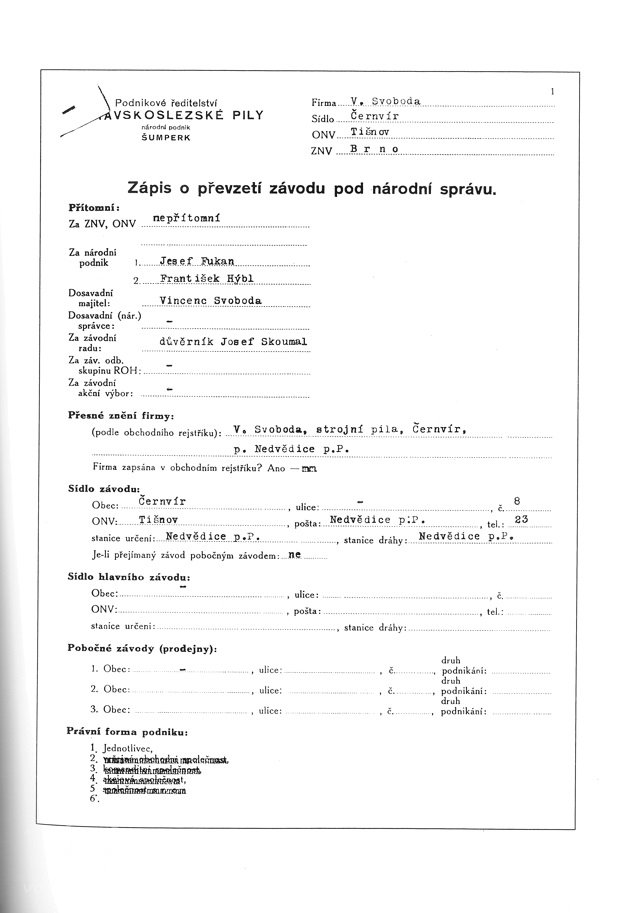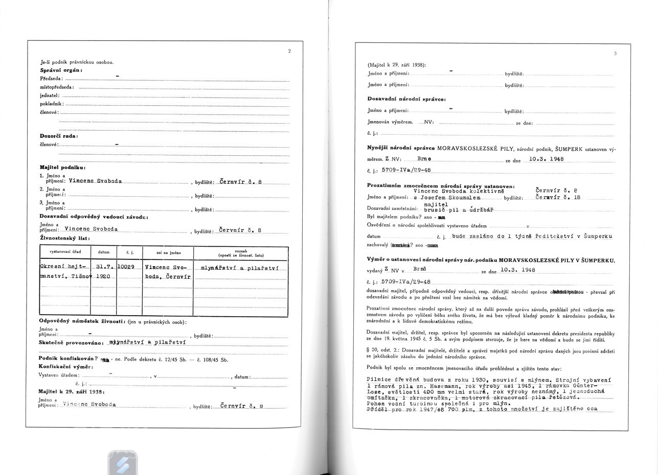 V roce 1930 byl majitelem mlýna a pily Vincenc Svoboda.