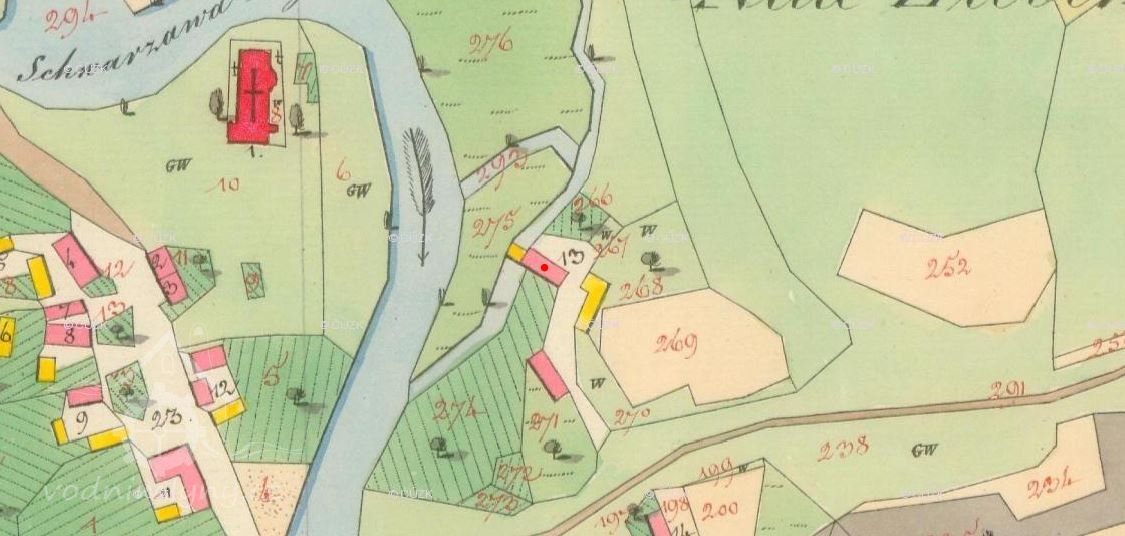 Dnešní mlýn č.p. 8 se uvádí k roku 1374 v zemským deskách.