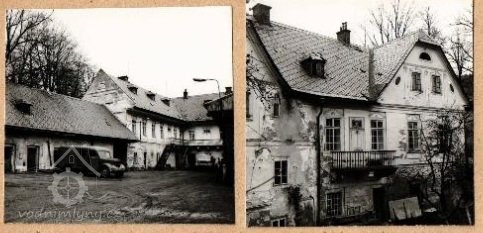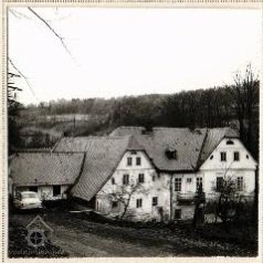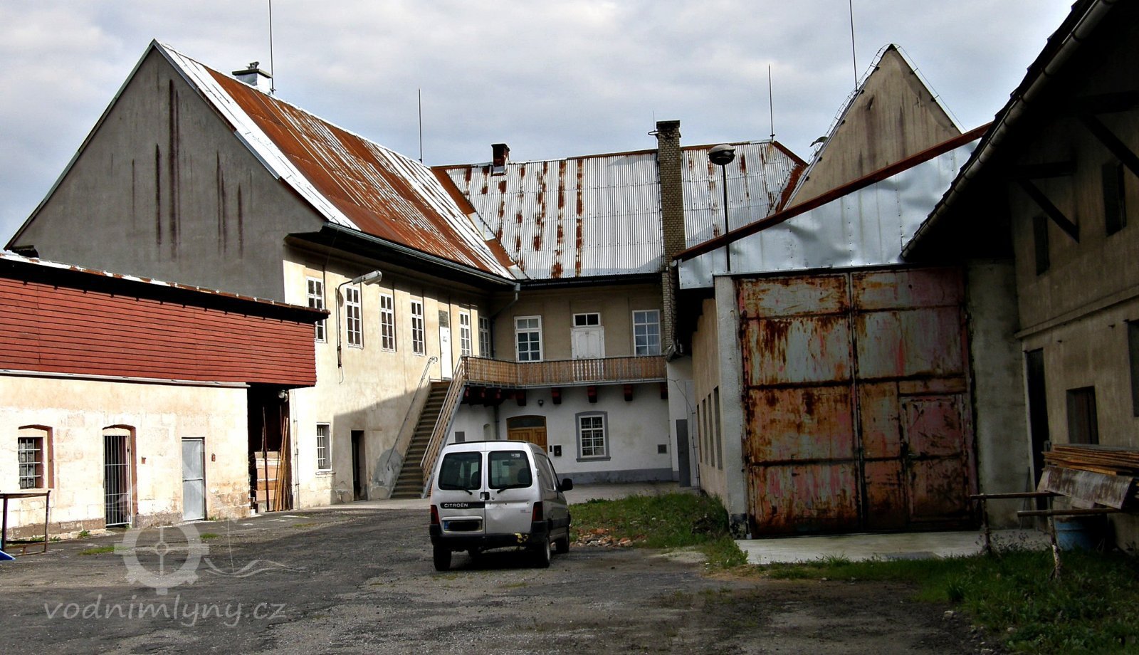 Podél jižní strany mlýn - nyní elektrárna, skladiště, garáže, na sev. straně navaz. na obytné stavení stáje, nyní teletník JZD. V dláždění dvora 3 mlýnské kameny. Na kabřincových prknech ve štítech nápisy: