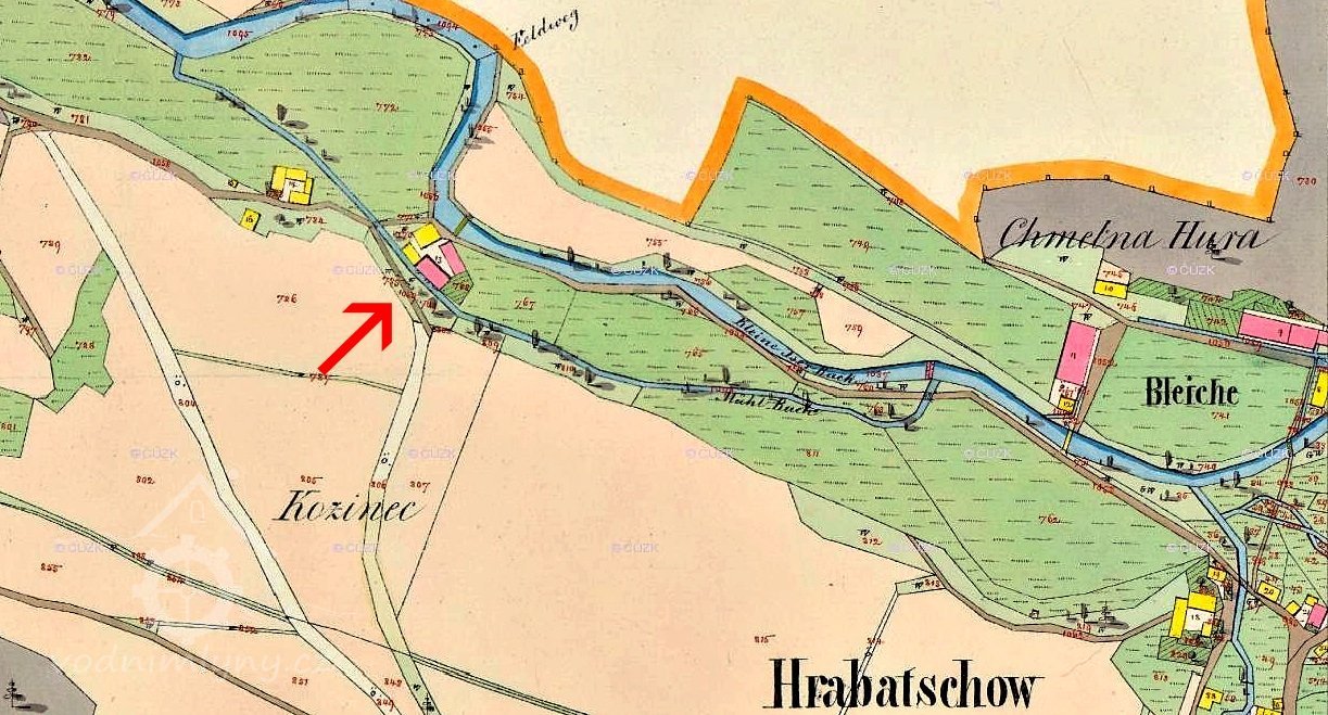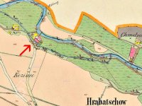 Mlýn stál 700 m. severozápadně od středu obce Hrabačov.
