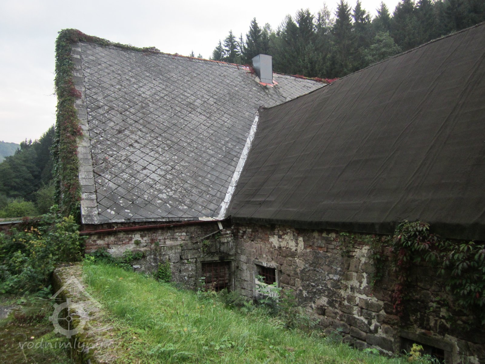 bývalá mlýnice adaptována na kolnu, na místě náhonu postavena garáž pro osobní automobil