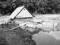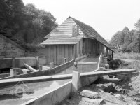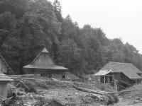 Valcha již bez střechy, v pozadí za stromy mlýn, 1971, © www.nmvp.cz/roznov