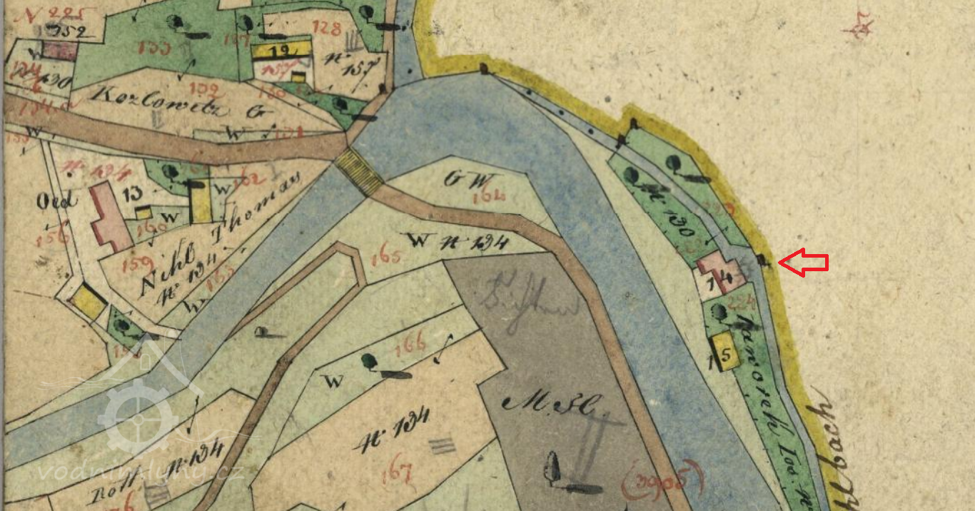 250 m dlouhý náhon, svedený z říčky Ondřejnice.
