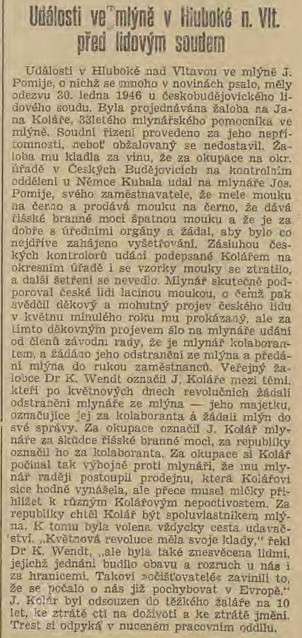 mlynář/nájemce Josef Pomij(e) (viz. článek v souvislosti se šetřením lidového soudu z ledna 1946 : http://vodnimlyny.cz/upload/media/2867/116624.jpg?v=2020-06-12-16-57) (PK)