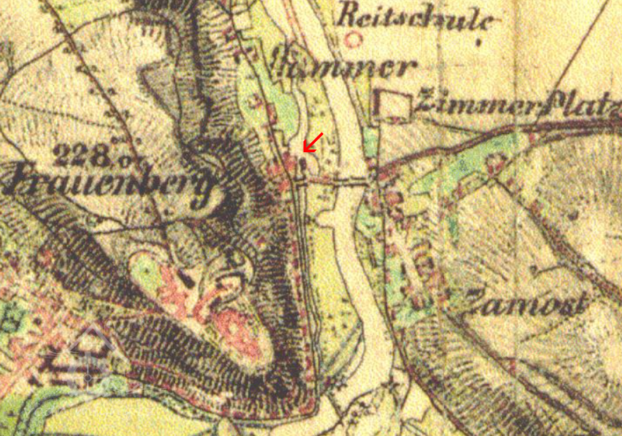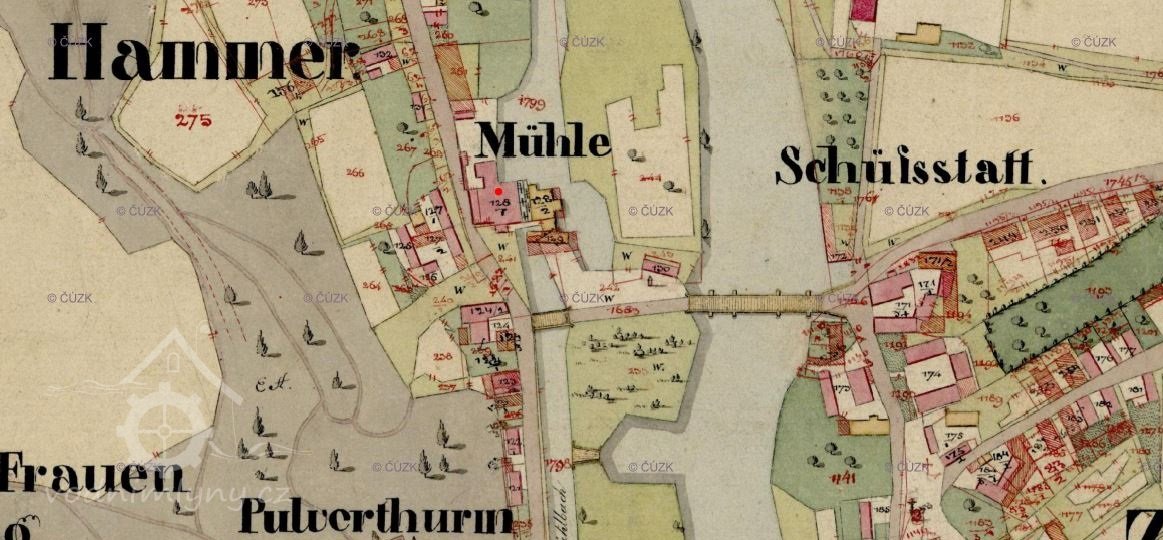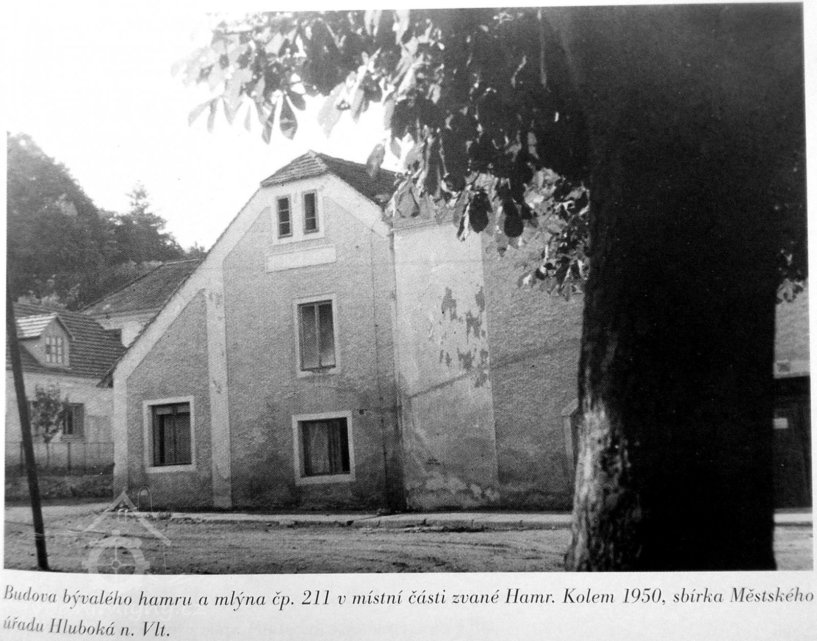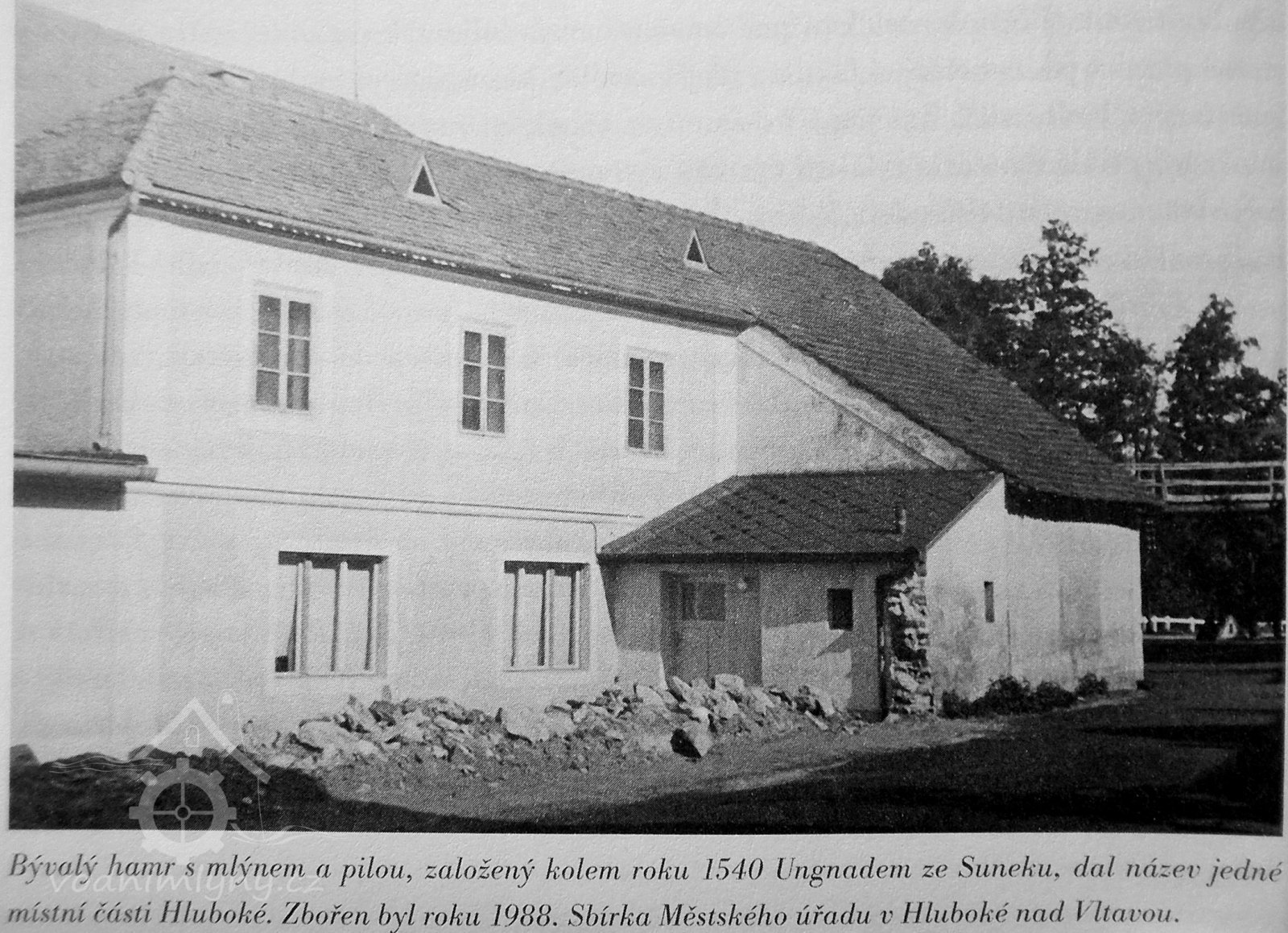Mlýn s pilou byl založen po roce 1534 Ondřejem Ugnadem ze Suneku. uvádí se i kolem 1540 i s připojeným železným hamrem a valchou na sukna, který dal název místní části jako Hamr/Hammer. Uvádí se zde koncem 16. století 11 mlýnských složení, mlýn tedy zdaleka nepatřil k nejmenším !!! (Hluboká nad Vltavou v proměnách staletí, s. 14, 118).