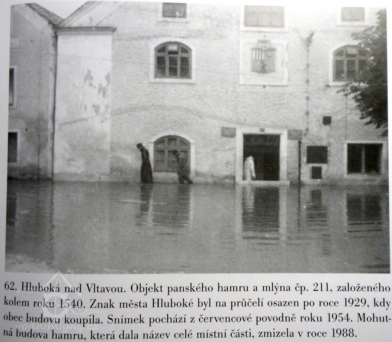 V Daniel KOVÁŘ, Českobudějovicko (Zmizelé Čechy). Praha 2012, obr. příloha č. 62 - foto z červencové povodně 1954.