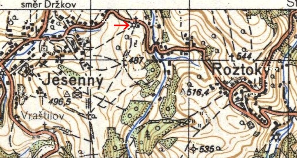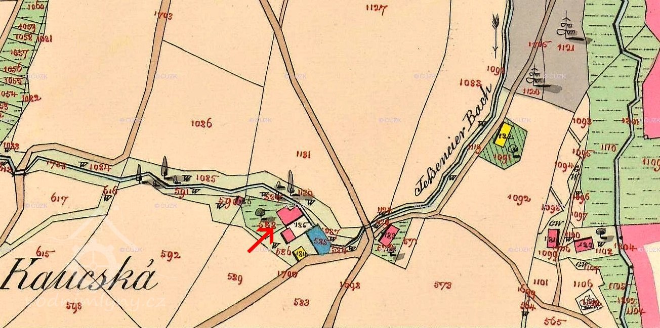Nejvyše položený zaniklý mlýn na Jesenském potoce.