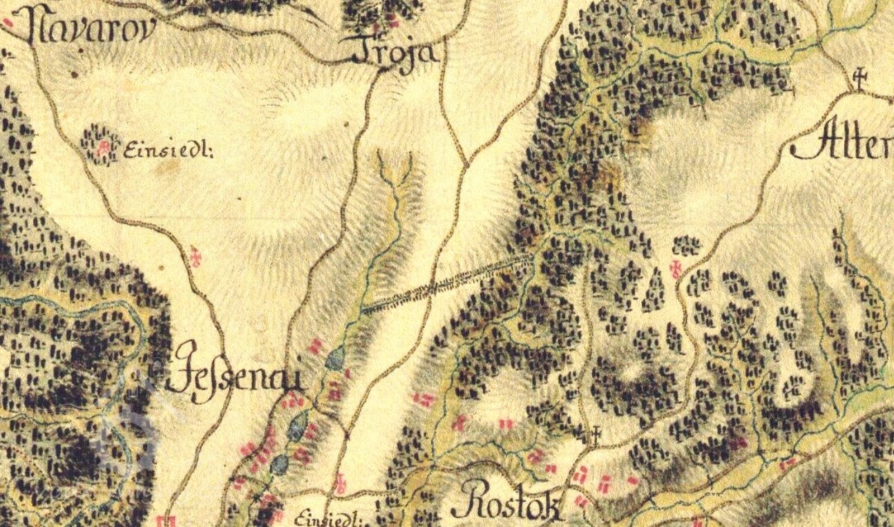 Mlýn se nacházel u křižovatky starých cest, na nejvyšším místě mezi Jesenným a roztockou osadou Dolenec.