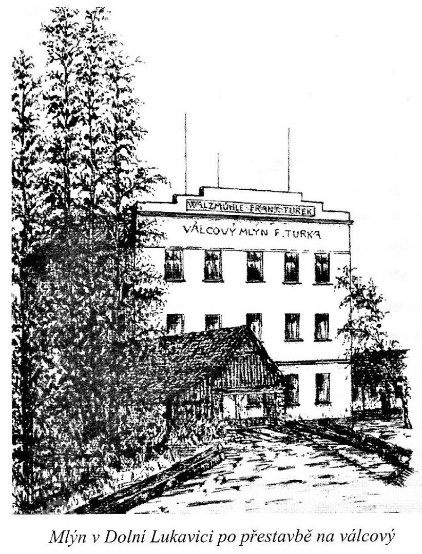 1662 "Mlejn dolnolukavský, celý od kamene vystavěný, však v rohu a nade dveřmi roztrhnutý, na tři kola a čtvrté pro pilu. Však nemele, toliko na dvě kola, pilou též nedělá, poněvadž lesů, kdežby se špalíky k ní dělaly, nemá, aniž také přináležejícího železí k ní není..."