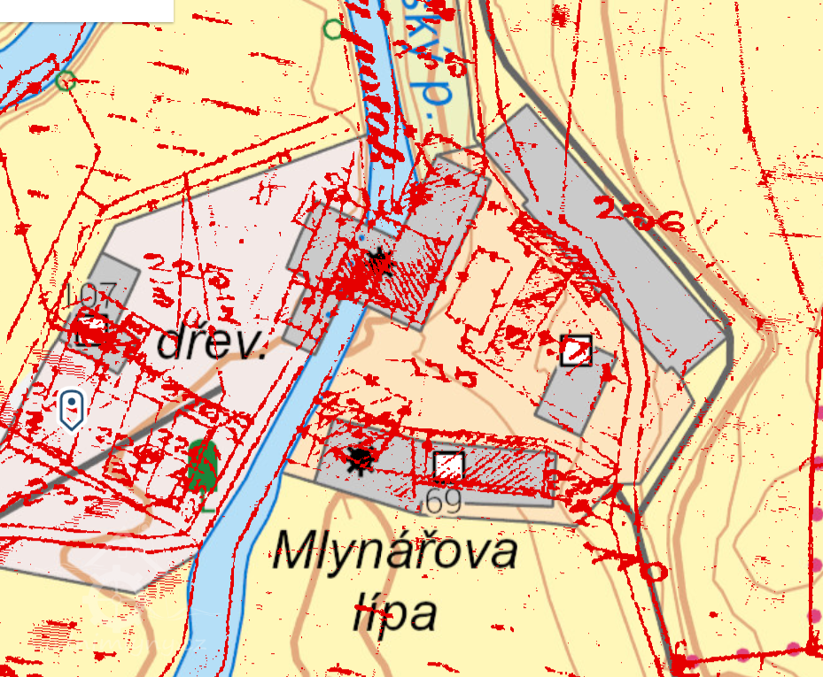 1757 Tereziánský katastr - panský mlýn o 3 kolech, 1 stoupě a 1 pile na stálé vodě
