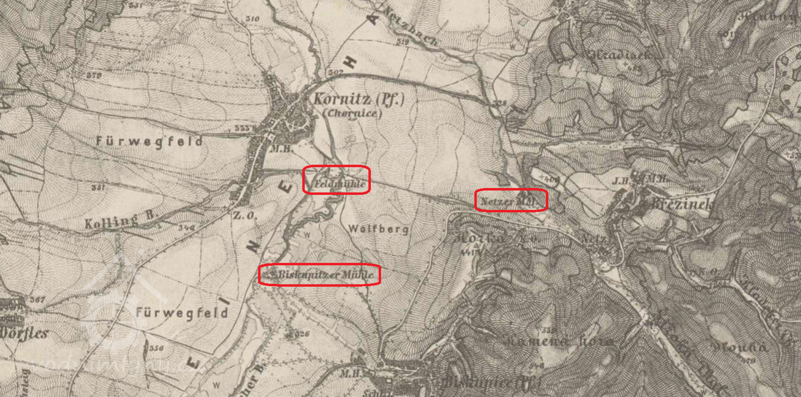 Z rodného listu mého prapradědečka: narozen 9.7.1838, kmotra Katharina Chornitzer Müllerin von Nez. (Jaromír Fatka)