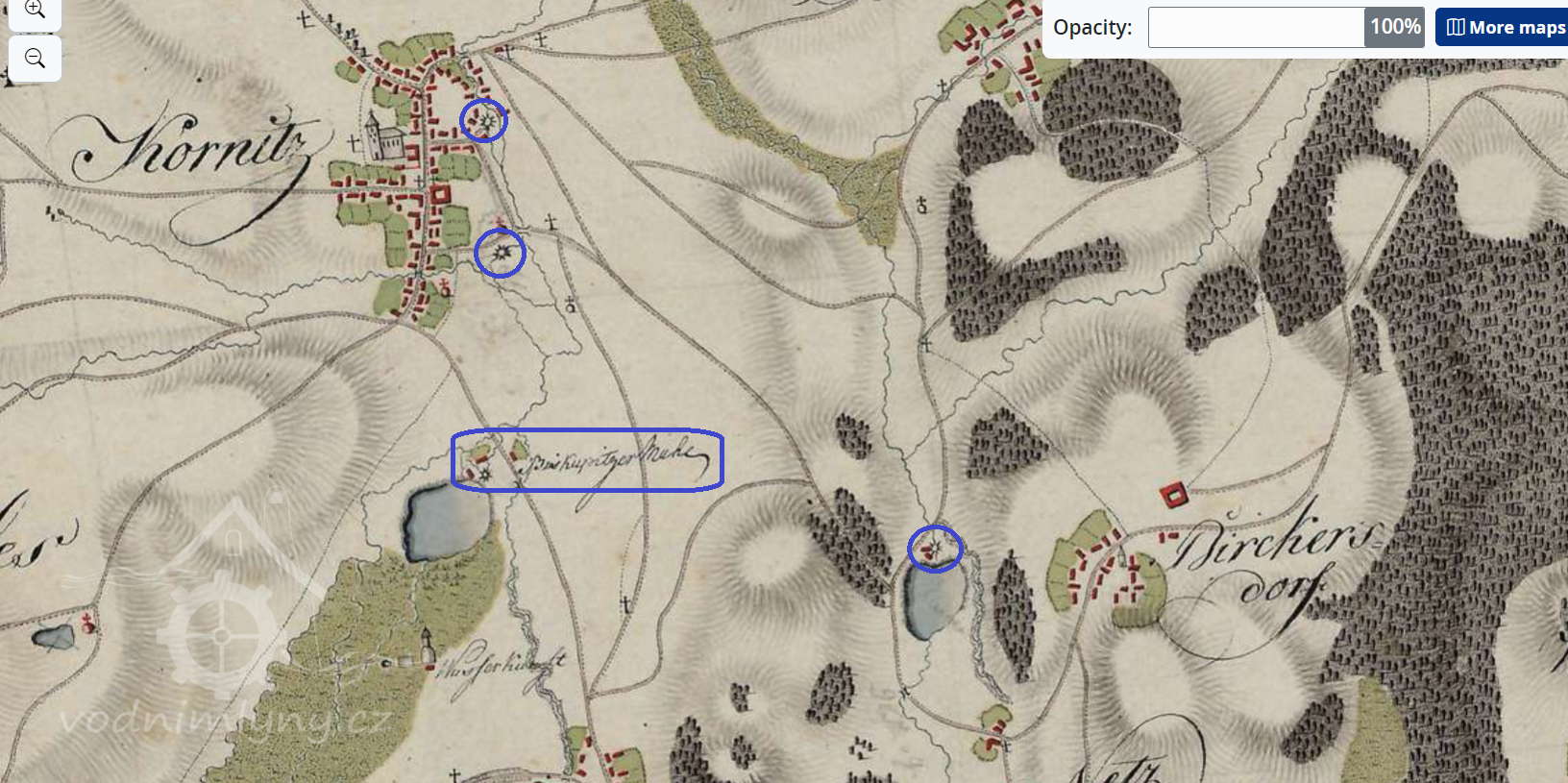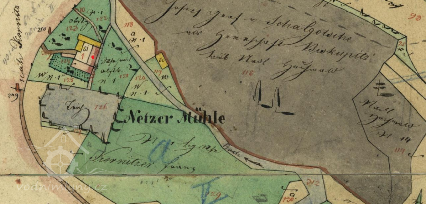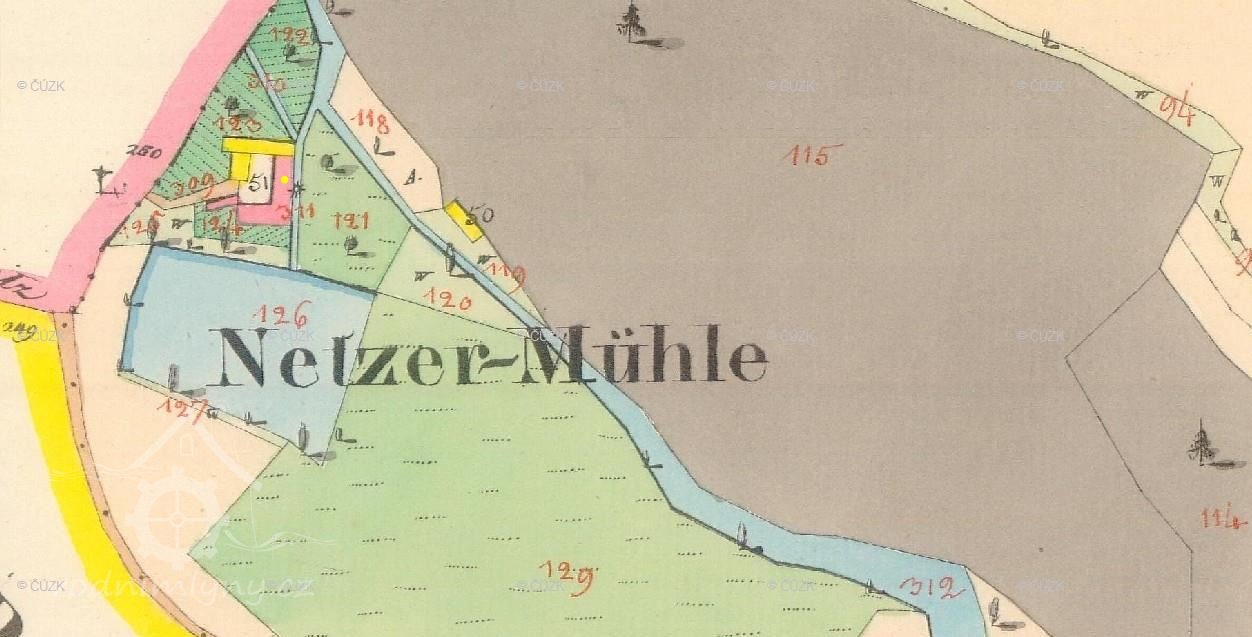 Popis1930: 1 kolo na svrchní vodu, hltnost 0,073 m3/s, spád 4,9 m, výkon 3 HP