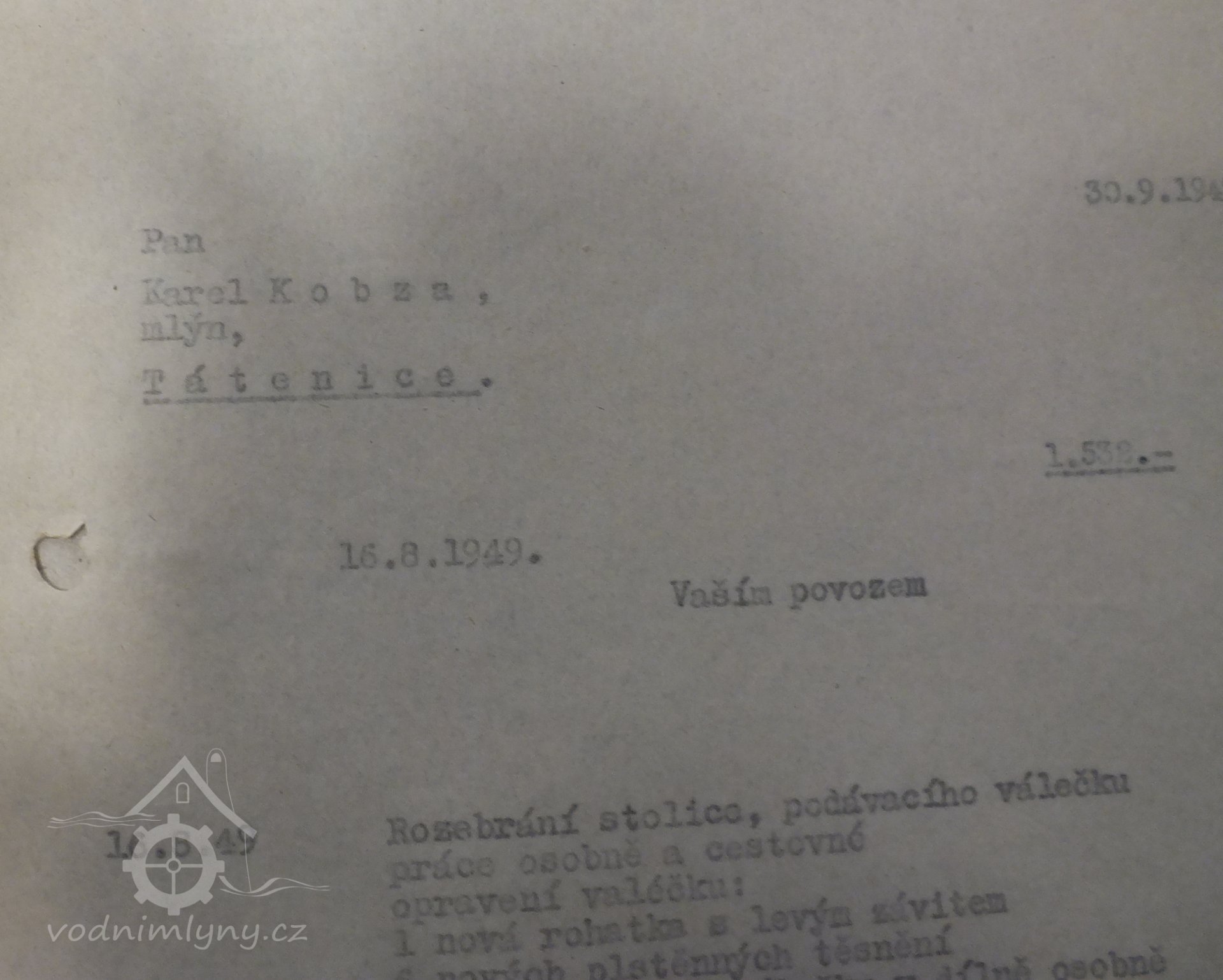 24.6.1770 František Richter hotově složil Václavu Schwenckovi 240 zl. za přestavovanou mlýnskou budovu a 1350 zl. za zařízení