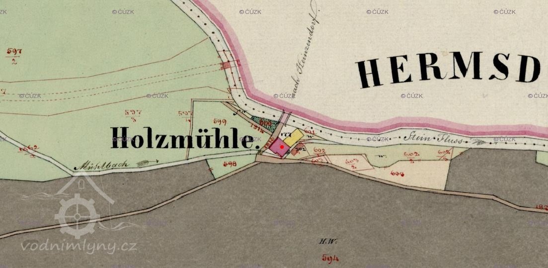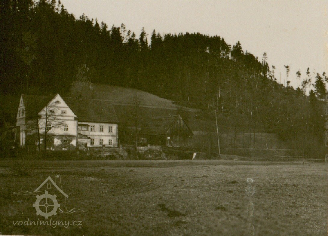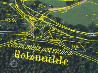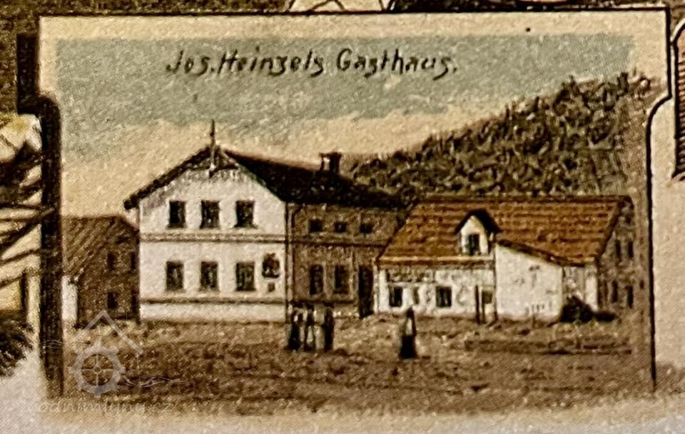 Mlýn přestavěn na hostinec, Gasthaus Heinzel, patřící významné rodině Heinzelů z Hynčic a Jetřichova, ačkoli dům byl už na katastru obce Hejtmánkovice (Petr Bergmann)
