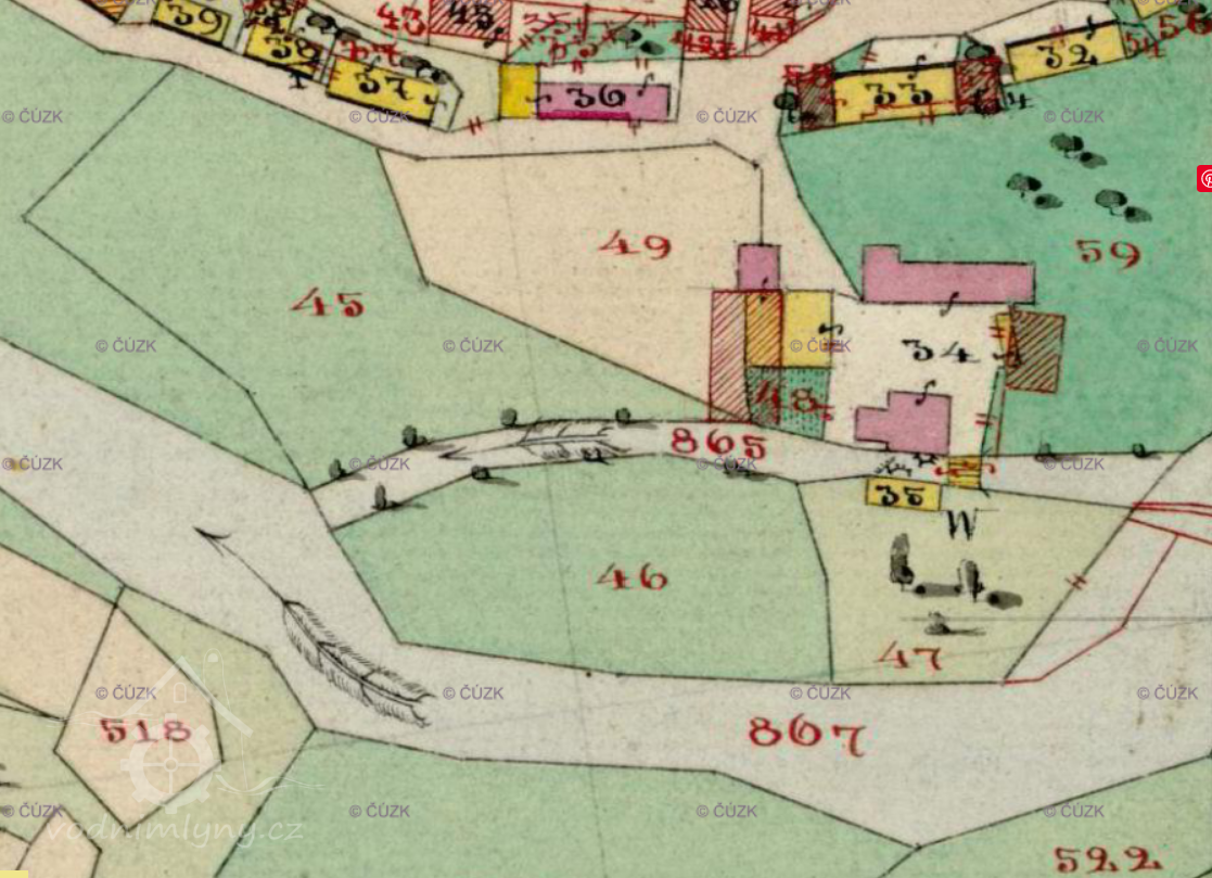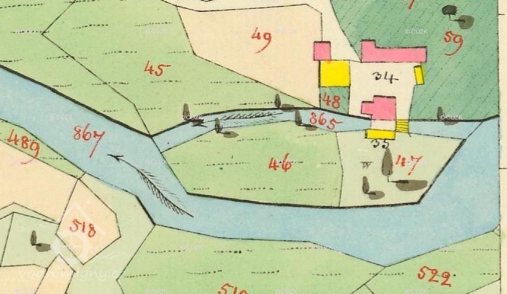 1853 povoleno posatvení nových prsou u jezu ve stejné výšce jako stará, na jez vydlabáno znamení povolené výšky viody