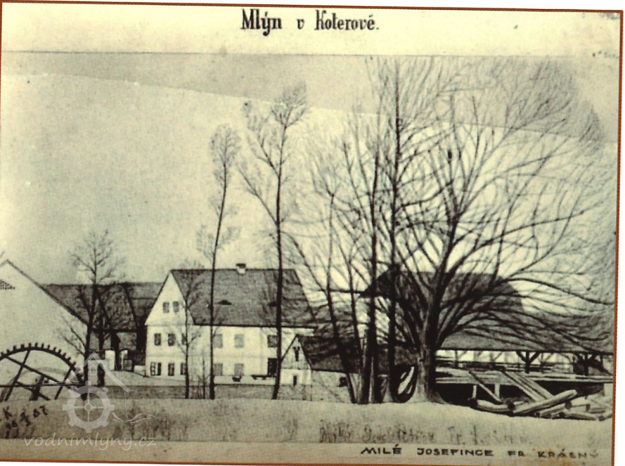 28. 3. 1369 Vavřinec z Kralovic,měštěnín Nové Plzně, zakupuje ves Koterov na řece Bradavě od bratří Mikuláše a Jakše z Újezda, mezi příslušenstvím uveden i držitel mlýna, ketrý má platit 100 grošů ročně.