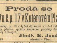 1890 Ferd. Flosman zamýšlí stavení zčásti zbourat a přisatvět jedno patro s příručními místnostmi.