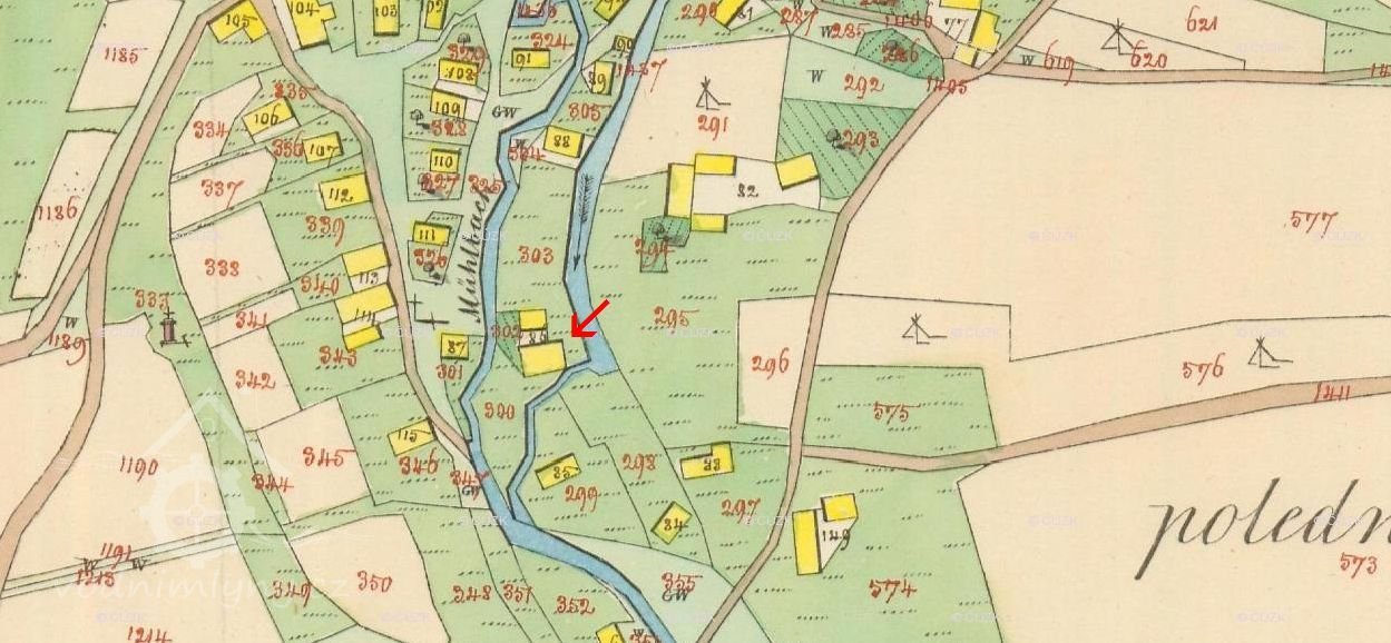 1840 provozoval mlýn Filip Vejdluh.