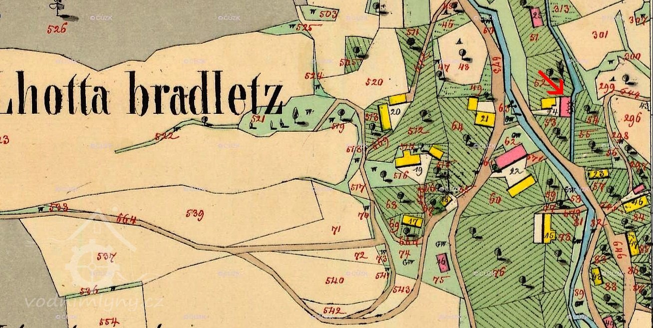 Mlýn zde ale měl již stát o deset let později, tedy v roce 1599, kdy se jej ujal za 105 kop grošů syn Václava Pusty Matouš. Bradlecký mlýn byl spojen s jičínskou vrchností a během 16. a 17. století se vystřídalo mnoho majitelů.