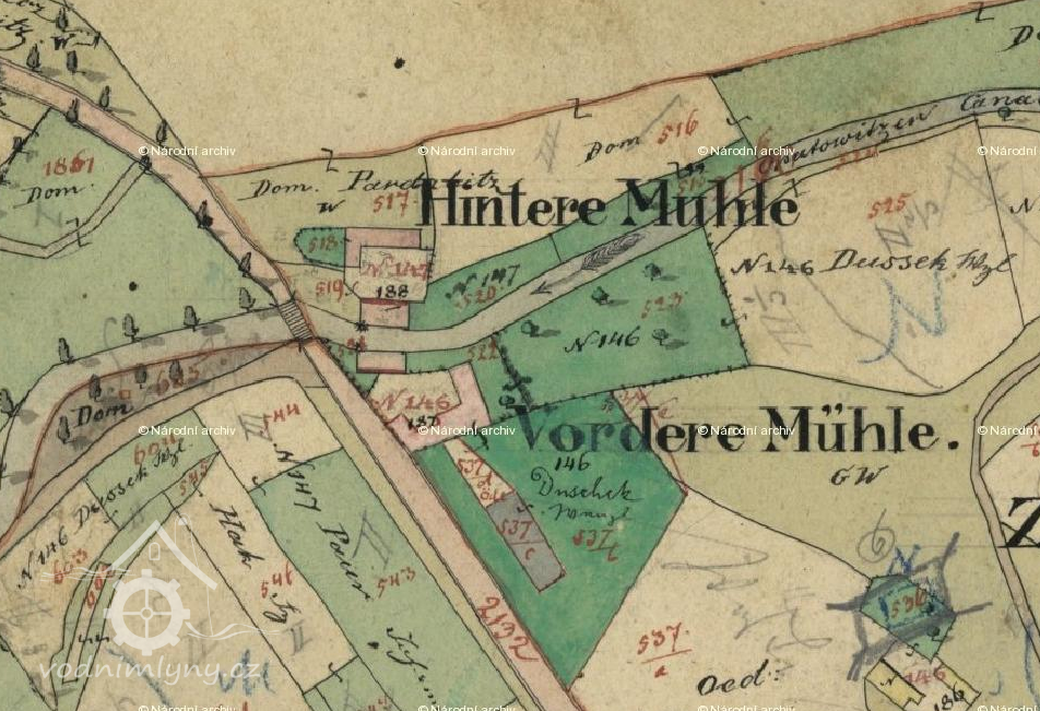 V roce 1812 koupili Zadní mlýn Petr a Marie Deylovi ze Štětína za 30000 zl. Hned následujícího roku jej však za 6 515 zl. prodali Františkovi a Terezii Waltrovým, kteří v roce 1814 mlýn prodali Josefu a Terezii Jakoubi.