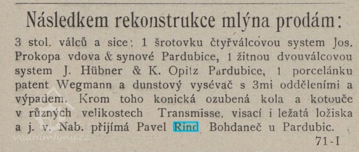 1651 Soupis poddaných podle víry - mlejn obecní: mlynář nájemník Jan Pokorný (30 let), manželka Dorota (30), tovaryš Jiřík (16), děvečka Marjána (18), všichni katolíci