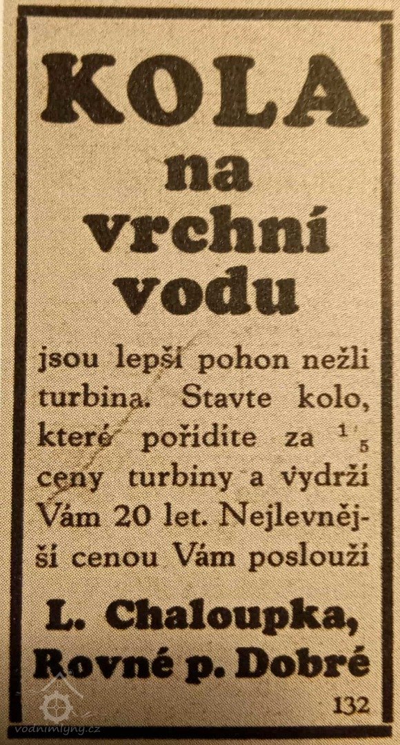 Po smrti posledního mlynáře na mlýně Františka Valtra roku 1922 mlýn mlel už jen krátce. Objekt koupil společně se svou ženou Emilii v r 1926 sekerník Ludvík Chaloupka (nar v Hoděčíně 1882 RK.). V té době byl mlýn již nefunkční. Muj prastrýc, když se vrátil 1921 z ruského zajetí ,do r 1926 podnikal v okolí Náchoda. V r 1926 zakoupil zmíněný mlýn(cenu neznám) a žil v něm se svou ženou Emilíí až do své smrti. Za bolševické éry pobíral hladový důchod 160Kč. Živil se výrobou dřevených žebříků až 10m dlouhých,(kmeny rozřezával ručně pilou, ve mlýně nebyl až do jeho smrti el. proud)vypomáhal při zemědělských pracích za odměnu v naturtálích,a také díky podpoře rodiny Ulrichových z nedalekého statku. Dožil se 94let . Střecha mlýna, již značně zchátralá se nedlouho po jeho smrti zřítila. Zbytek byl novým majitelem p. Horákem z Prahy stržen a postaven domek, stojící dodnes. K panu Ludvíkovi CH. jezdil mnoho let jeho mladší bratr Ak. malíř Karel Chaloupka(nar.16.3.1889 v Hoděčíně) a pobýval zde přes letní čas. Při vycházkách po okolí maloval místní krajinu, vytvořil mnoho obrazů z této oblasti a svou tvorbou oslavil krásu Orlických hor.