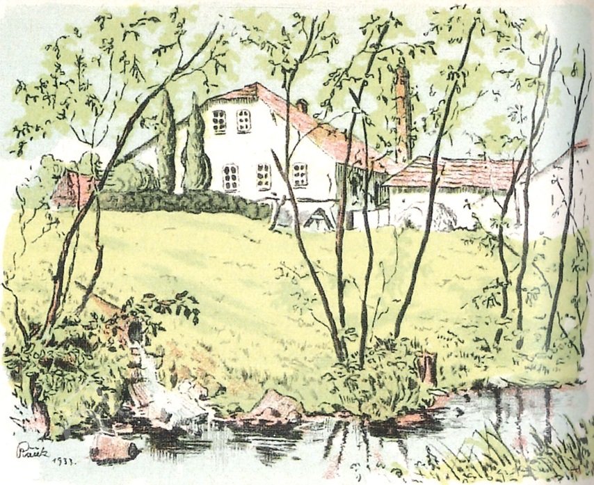 Před požárem 1871 (1874) mlýn celodřevěný, do mlýna se chodilo po dřevěných vantrokách.