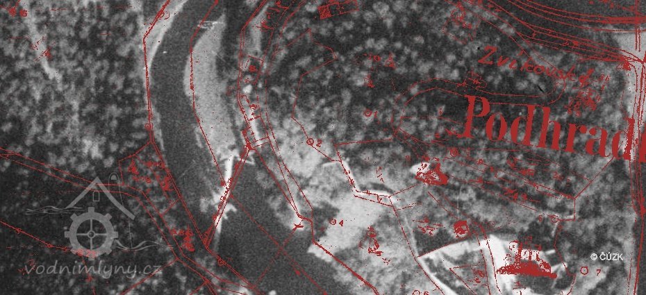 Zaniklý mlýn městečka Podhrad, které patřilo ke hradu Zvíkov. Zanikl 1920. Dnes místo zatopeno Orlickou přehradou.