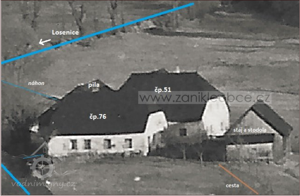 -dům čp.51/st.p.76/1 a čp.76/st.p.76/2 a dále pila k čp.51/ st.p.76/3 a hospodářská budova /stodola a stáj/ na st.p.120- stála západně od výše uvedených staveb.Podle knihy "Im Lande der Künische Freibauern"byl původní název mlýna "Gmoa Mühle".Jméno Schafhauser se objevuje již v době vzniku mapy Stabilního katastru/1837/.