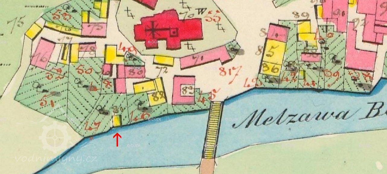 PopisV roce 1930 byla ve mlýně Francisova turbína o hltnosti 950 l/s, na spádu 1 m, o výkonu 9,5 HP.