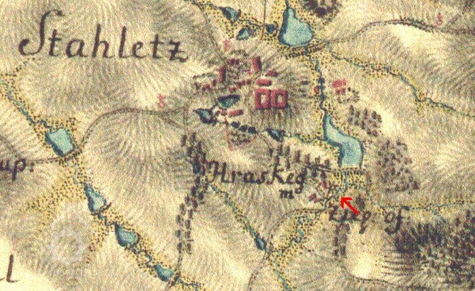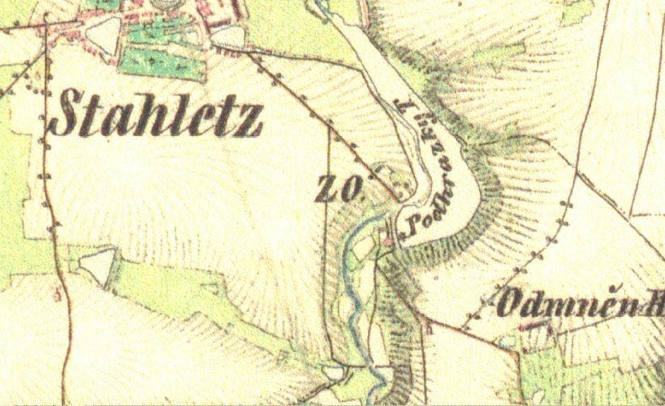 Protokol z 8.8.1883 sepsaný ve věci zasazení cejchu a stálého bodu u rybníka č.parc.479 a mlýna čp.62 ve Stálci... Přítomen splumajitel mlýna Alois Kosobud...