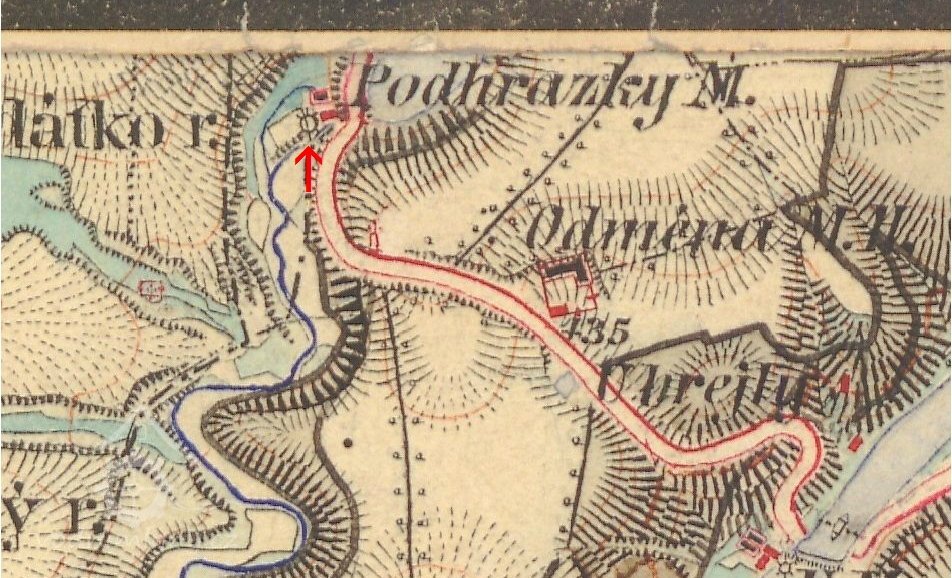 K prozatímnímu určení všech výšek ustanovil se stálý bod brázdou 40 cm dlouhou a na kvádrové zdi pravého křídla jalového splavu splavu uvnitř rybníka vatesanou, nad níž vydlabán jest trojúhelník vrcholem na brázdě spočívající a letopočet trojúhelníkem rozdělený...