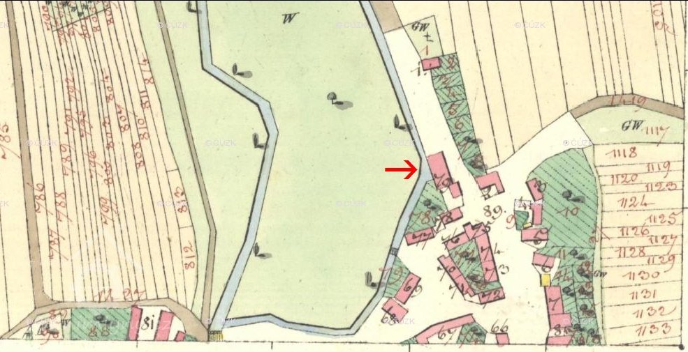 Upřesnění místa, kde mlýn stál, podle majitele bývalého mlýna v Mysločovicích, p. Jiřího Palky. (GPS upřesněno podle historických map)
