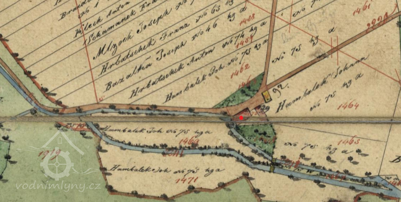 V roce 1930 byl majitelem mlýna František Hambálek. Potok je uváděn jako Zdislavický (dnes Olšinka) - "Seznam a mapa vodních děl..."