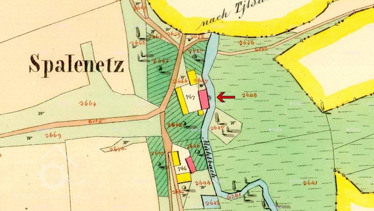 1456 rozmíška mezi mlynářem Mikulášem a Viktorinem Motovúzem skončila smírem. V narovnání zmíněny dvě cesty k mlýnu: 1) od obce pod dolci k lukám 2) od kostelíka někdy sv. Mikuláše úvozem. Mlynáři Mikulášovi přiznáno právo po posečení luk užívat obě cesty od mlýna podle strúhy ku stavu.