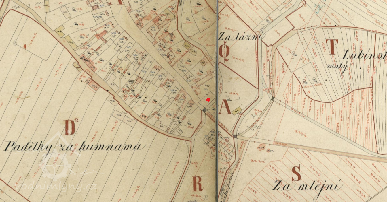 V roce 1841 postavil budovy mlýna a pily Jozef Růžička (viz zápis na omítce)