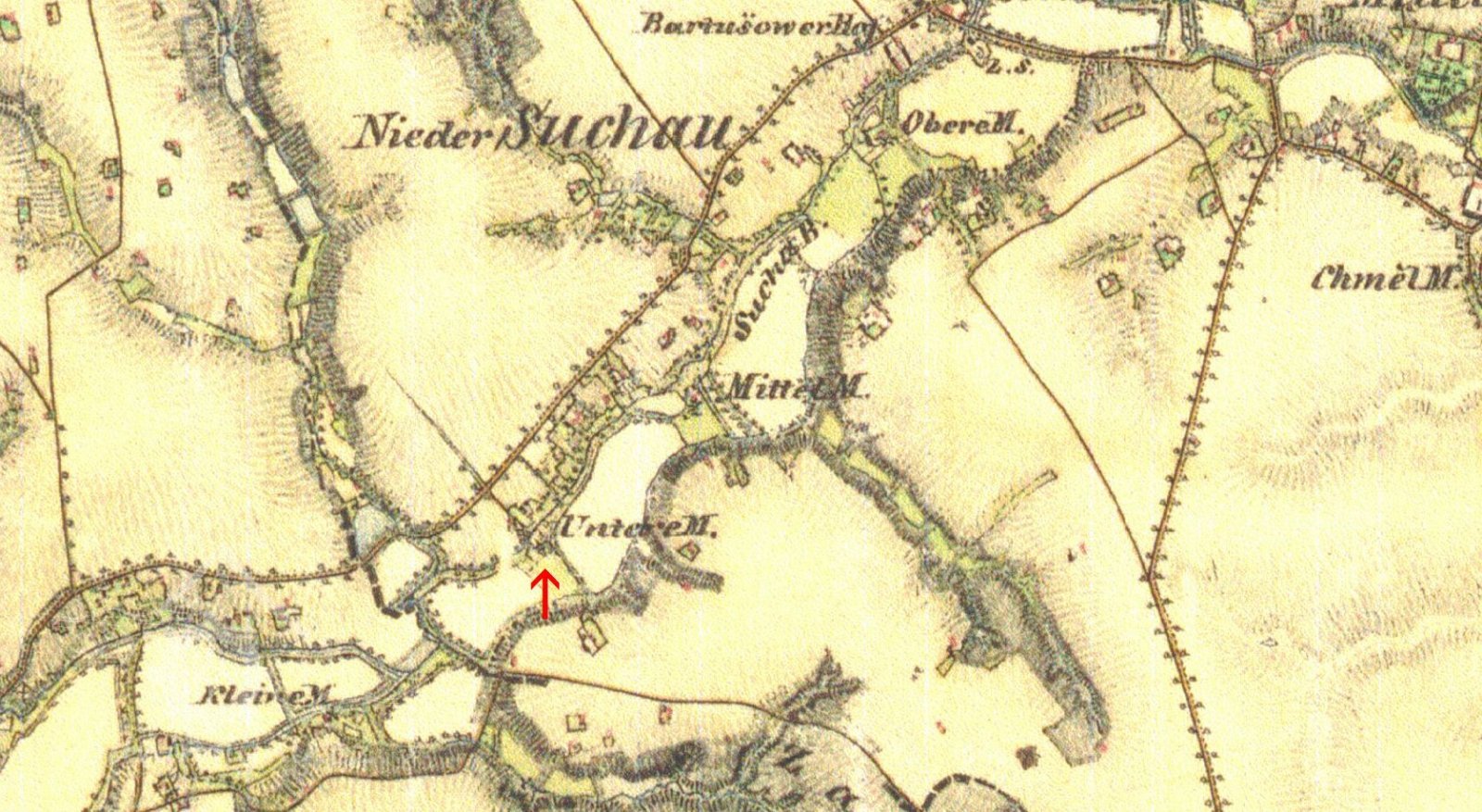 Mlýn je poprvé vyobrazen na II. vojenském mapování pod jménem Untere Mühle. Na Leteckém mapování z 50. let již chybí. Seznam vodních děl z roku 1930 mlčí (RŠ)