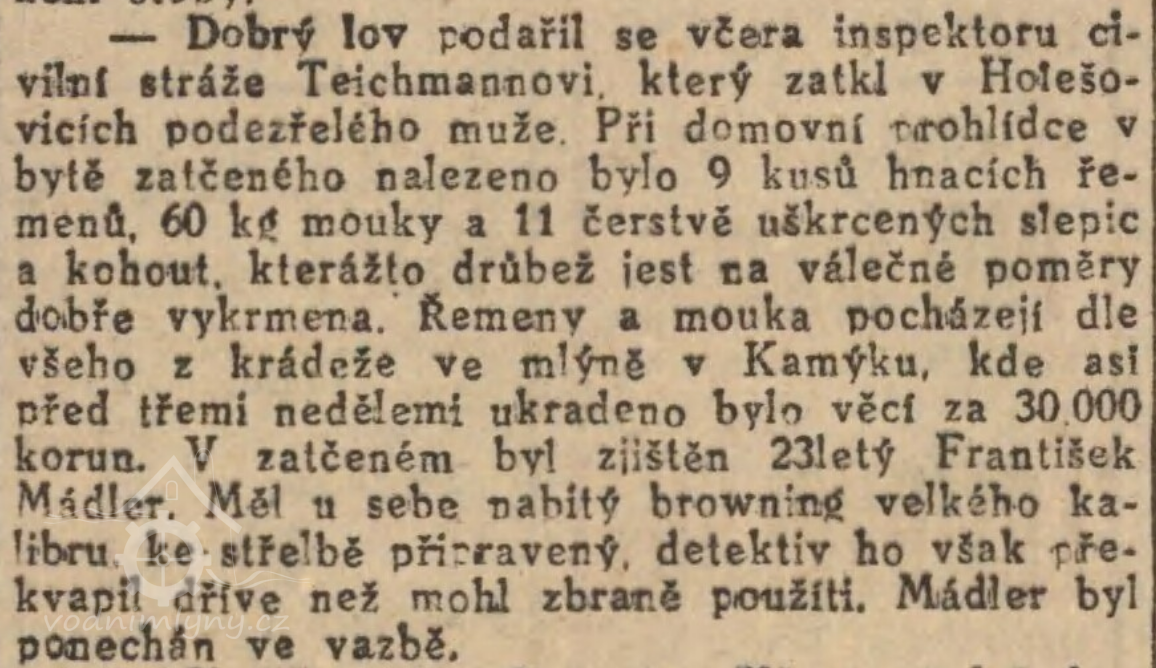 po smrti Josefa Zemana vdova mlýn pronajala Vratislavu Zemanovi, statkáři z Kamýku