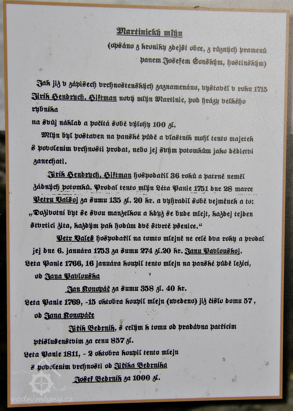 Mlýn postavil roku 1715 Jiřík Hendrych. (PŠ)