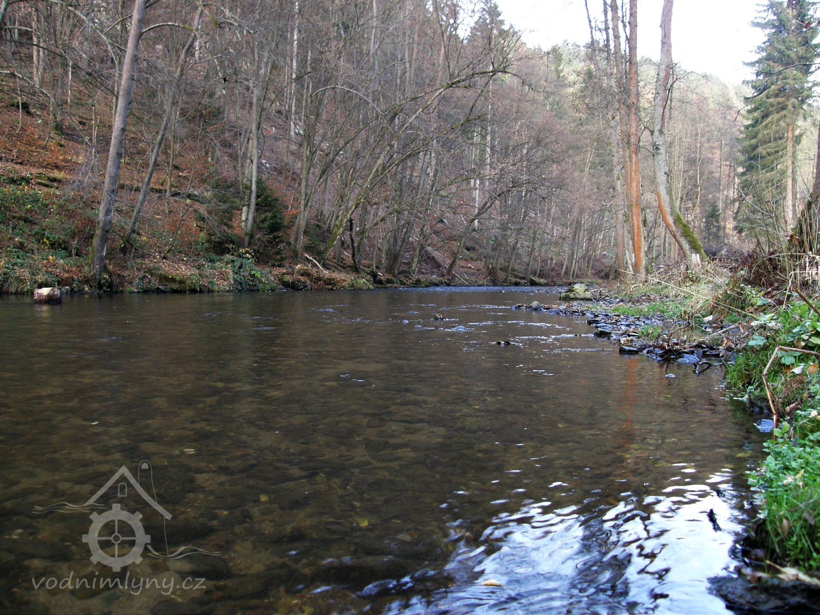 U mlýna na potoce Kamenici "jez toliko z navalených kamenů a pak splav ze dřeva. Od jezu byla část vody vedena zvláštní mlýnskou strouhou k mlýnu. Na strouze byly 2 okenice k možnému vypouštění vody ze struhy do potoka. Mlýnská strouha malý kousek pod mlýnem vedla opět do Kamenice. Mlýnská strouha vedla po pozemcích mlýnské usedlosti, na kterou neměl žádný právo. Vodní právo se vztahovalo na celý běh Kamenice a sice pod mlýnem tak daleko, aby nebylo ve vykonávání mlýnské živnosti nijak ublíženo."