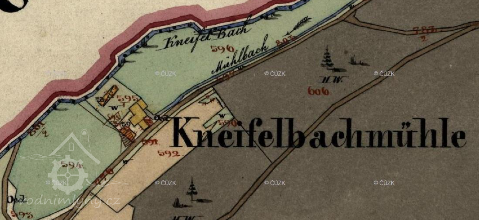Datum vzniku mlýna není známo. Mlýn není uveden v žádném historickém dokumentu. Na mapě Josefského mapování z r. 1764 není zakreslen. Mýn je uveden na mapě II. vojenského mapování z r. 1836. Na mladších mapách je mlýn zakreslen. Podleský potok se nazýval Kneipelbach.