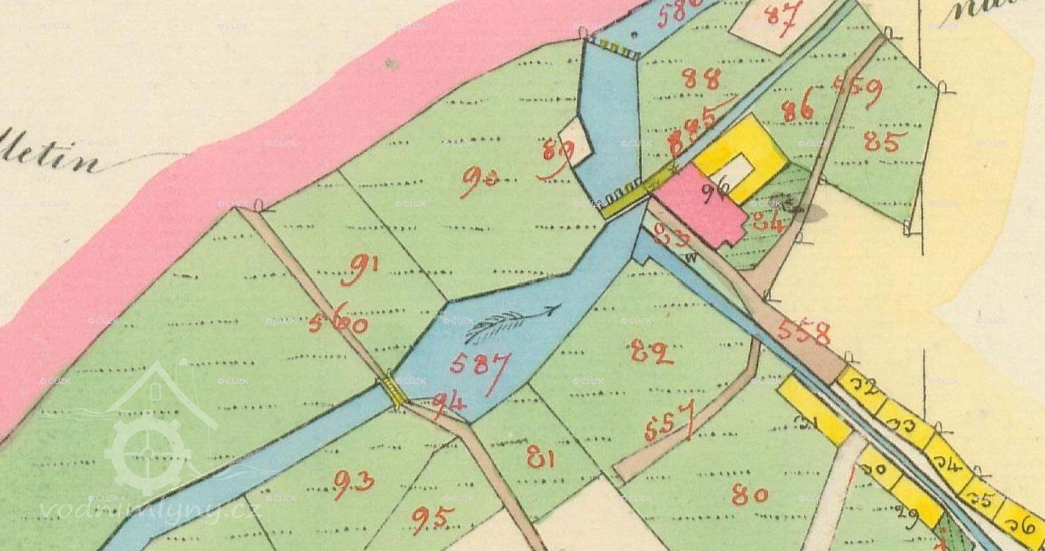 Popis1903: jedno kolo na spodní vodu v průměru 3,5 m. Šířka věnce obnáší 1,5 m; níže pila, jejíž kolo měří 3 m