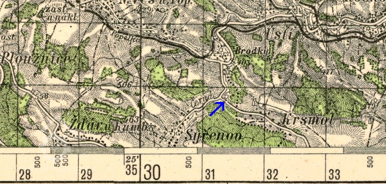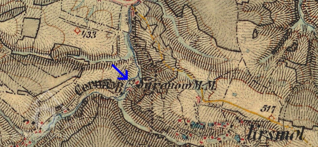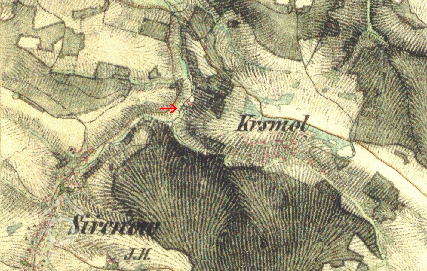 Mlýn se nacházel na samotě mezi Syřenovem a Krsmolí.