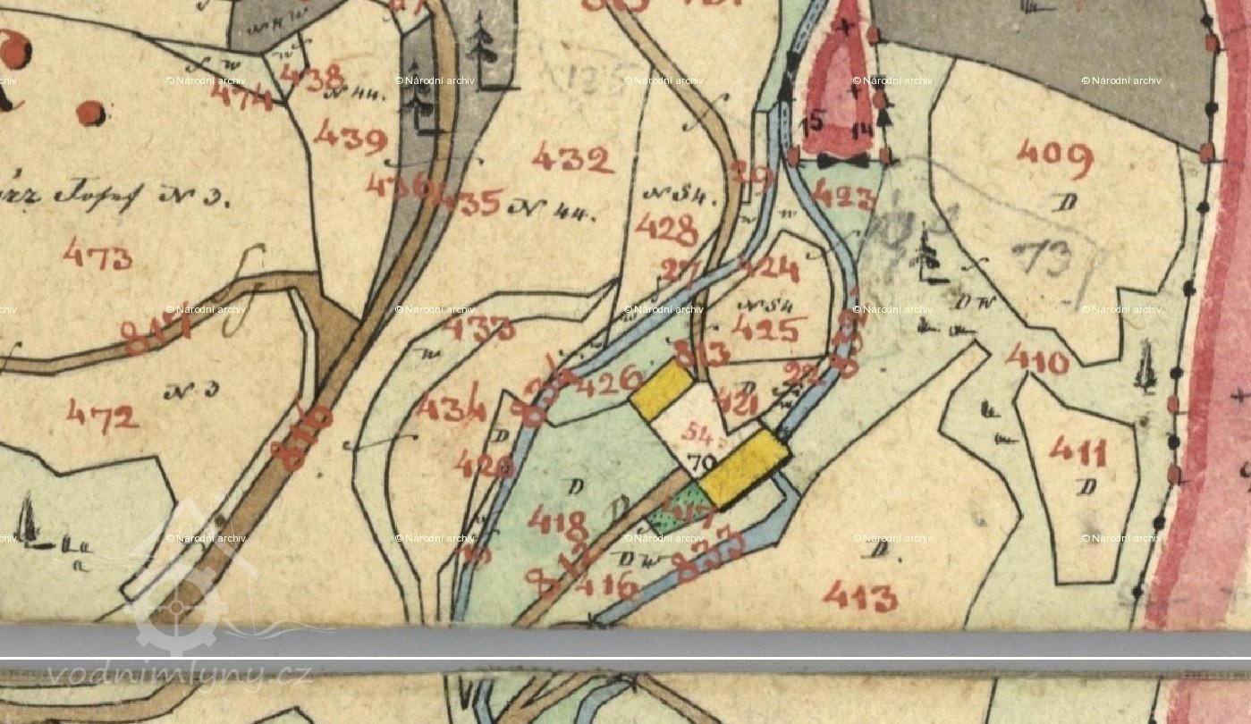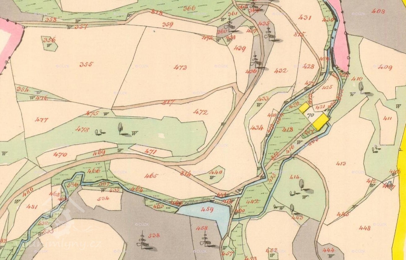 1849 mlýn s 9 jitry pozemků Štěpán Šimek za 4300 zl.